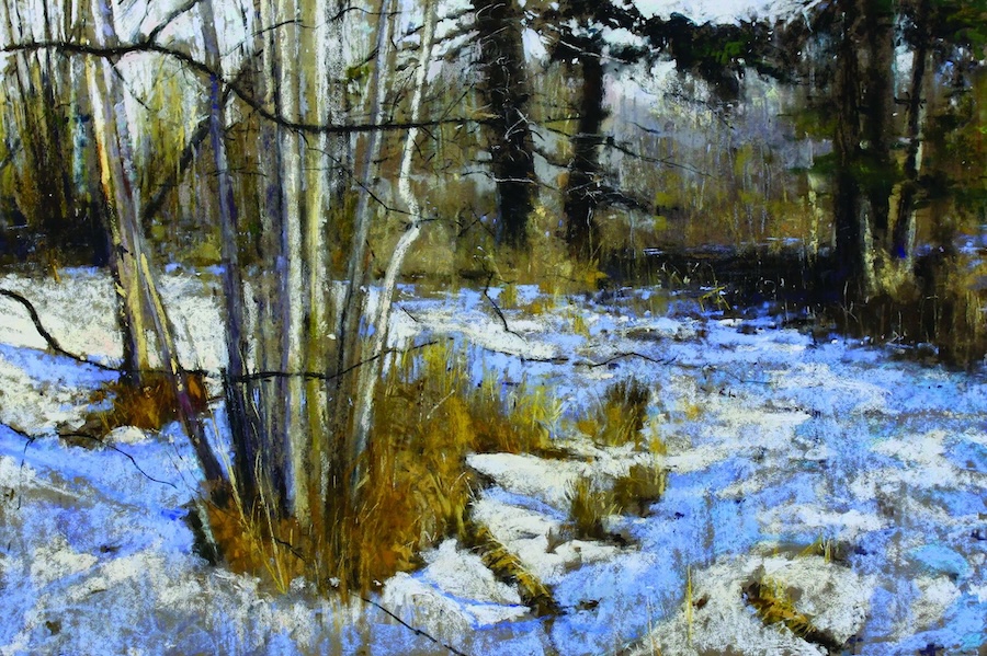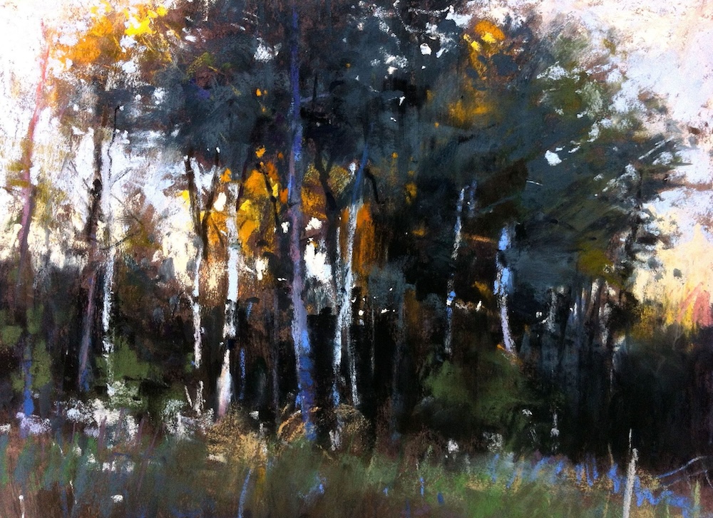 Once I begin a pastel, having practiced for many years, I feel I enter a zone that’s somehow protected from my environment. I become laser focused and I could very well be in the middle of an airport or a field – the concentration and decision-making is the same. I love to lose myself in the work, no matter where I am.