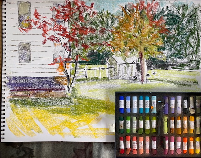 Lucia Stout grabbed a sketchbook and started right in with this landscape scene: