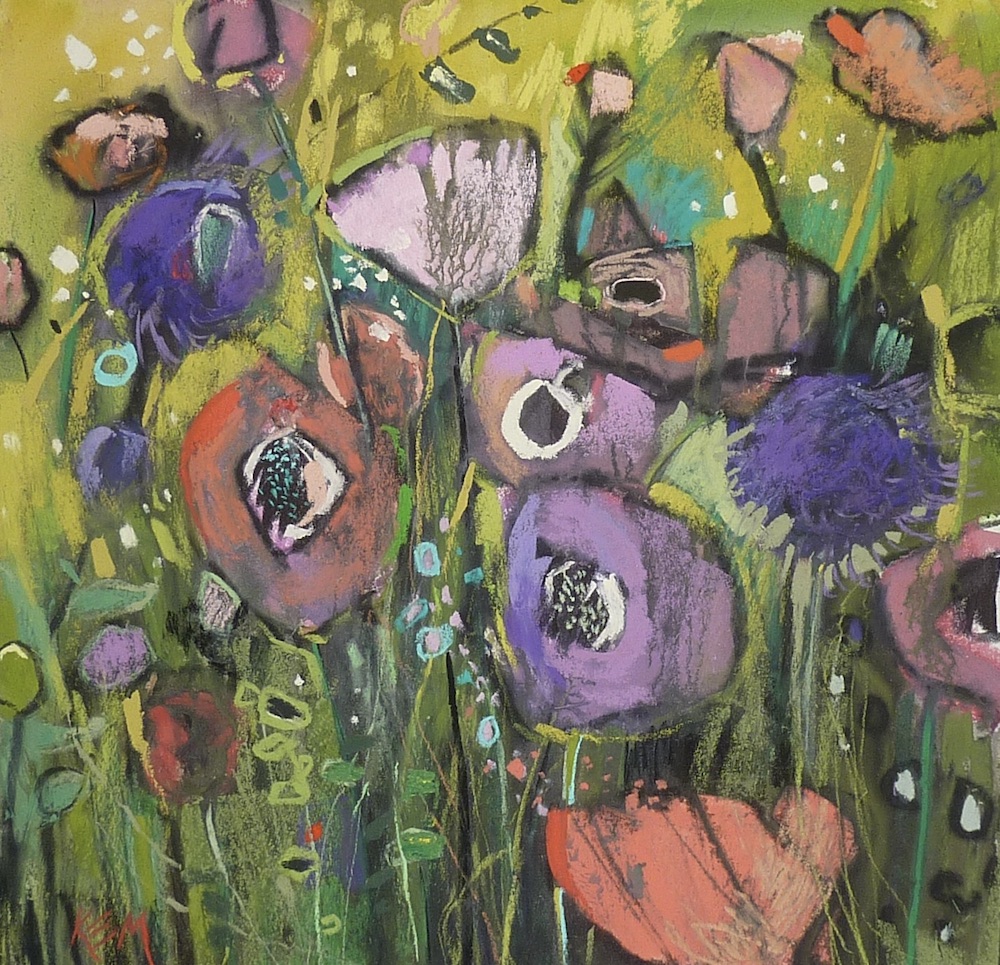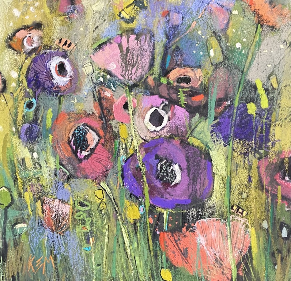 Karen is known for her representational paintings of wildflowers yet it’s clear to see where she’s been headed. Her new work evolves naturally from her more familiar style.