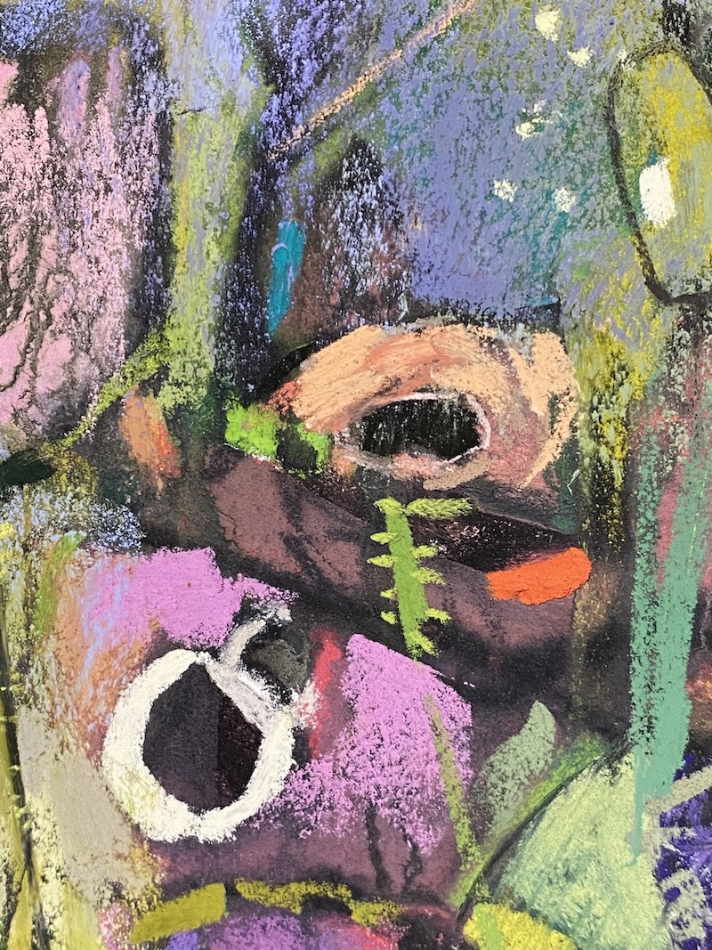 I am going to take that advice and run with it. My abstract flame is still burning and I can’t wait to see where it leads me. I will be taking an in-person workshop this fall with Larry Moore on painting large abstracts. I’ll be bringing my pastels!