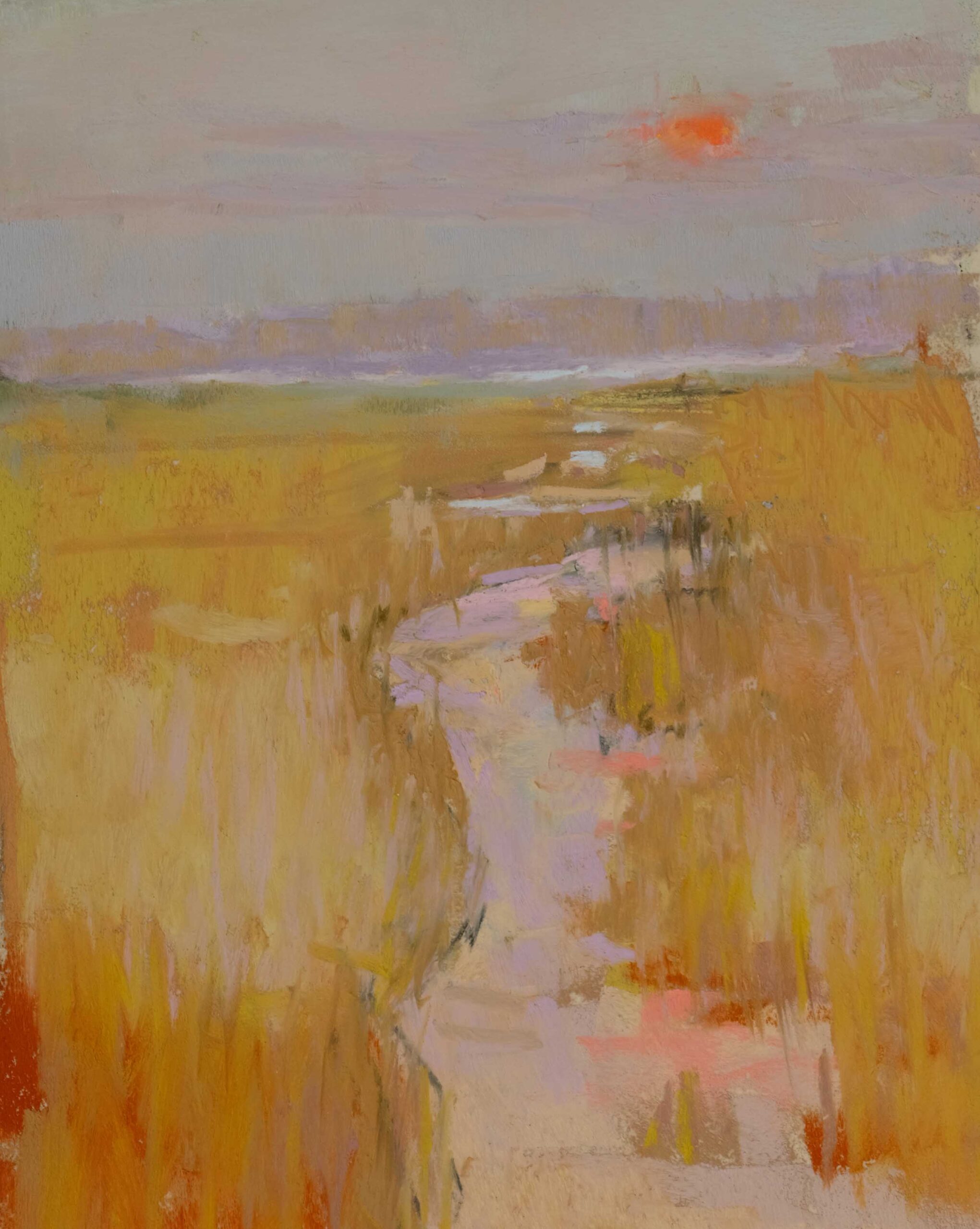 Over the years. I have experimented with many different mediums but I keep returning to pastel. Other mediums become unworkable over time, but pastels can be picked up and restarted with ease even years later. I love the vibrancy and simplicity of pastels. They are applied directly to the surface of the painting and mixing is done there, not on the palette. Results and corrections can be made immediately. Pastels are also so versatile. You can underpaint or overpaint with just about any other medium and continue to apply pastel.