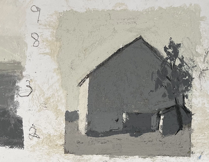 Value Study for barn 1: Using a wider range of values I can achieve the contrast to create a sunny day.