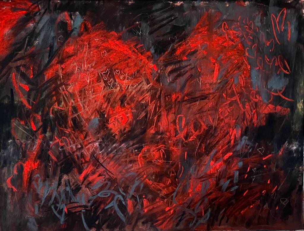 Your cataclysmic heart. Did you mean to have the beautiful horses head to the right and the cat like creature to the left I assume not but loved it, unintentional things are a treasure to find . First time I’ve ever sent in a comment!