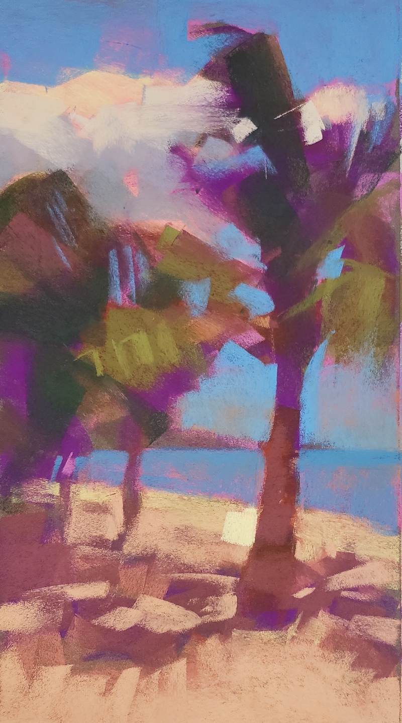 3. Quick-timed sketches help you to think of the overall composition and colour scheme of the painting and help keep your coloured sketches fresh. Give yourself 10 to 20-minute time limits for a small study. This will help you to not overwork your pastel piece. Sketches don’t need to be done before your pastel painting. If you get stuck halfway through your painting process, or even when trying to finish a painting, then stop. Take a break and create a small sketch. It may help you move forward with your work.