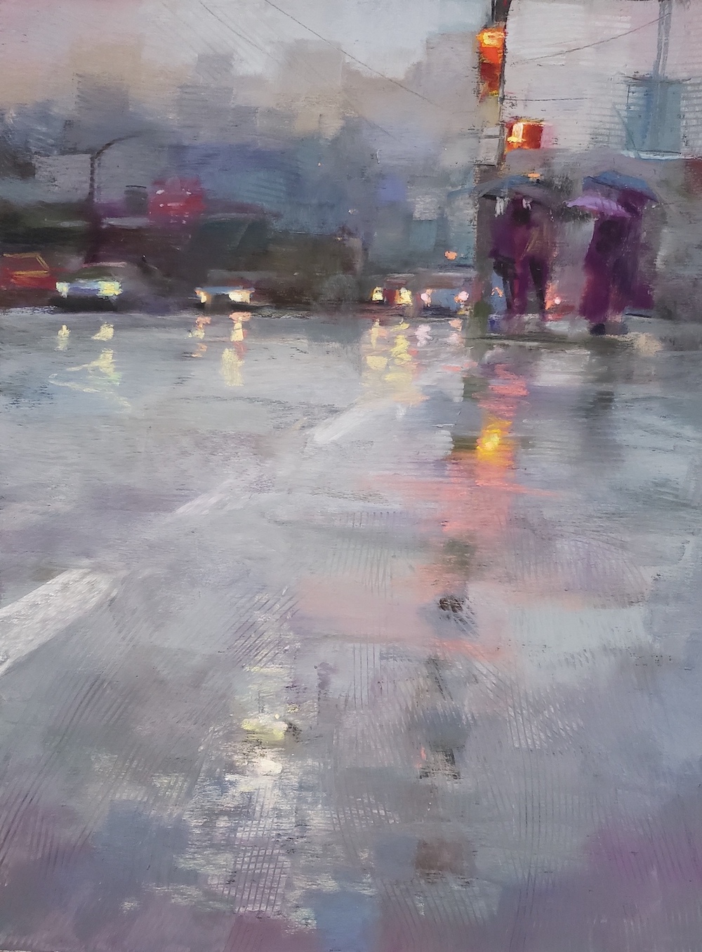 Really great article! I love the use of that hot pink for the initial block in—and there’s just enough of it still visible in the final painting—that’s just really cool!!!. One thing that I want to try is using a comb or that modeling triangle or even something else to scrape into my pastels. I just love the idea of adding textures (and patterns!) that way. It adds interest and allows some of the under colors to poke through—love it! Plus, it seems to work no matter what the subject matter is! Thanks for sharing these insights!